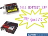 Our Principle: Good Quality,Good Price,Fast delivery,Good service! HID CONVERSION Kit HID LAMP H7: HID CONVERSION KIT ISO9001,Emark approve HID CONVERSION KIT defect rate< 0.5% HID CONVERSION KIT 15 to 24 months warranty HID CONVERSION KIT directly from factory Ballast specification Size of ballast: L 86*W 77.2*H 34.2mm Input Voltage: 9 17V Max Start Voltage: 23kv warm boot Current: 3.2A Cold boot current:<6A Output Power: 35w Output current:DC Working Temperature: -40Centigrate +105Centigrade Power Efficiency : reach 82% Working Frequency:260 310Hz lifetime of ballast:3500hours lifetime of xenon bulbs:over 2500hours The leave factory testing items: 1)6 hours continuous working aging test. 2)Connection circuit protection test. 3)Short circuit protection test. 4)Lack of voltage protection test. 5)over voltage protection test. 6)Flash light concussion test. 7)Quakeproof capability test. 8)cold/warm boot test. 9)Polarity protection test. 10)EMC anti-jamming test. HID Bulb specification HID Bulb specification 1) UV cut glass forheadlight protection 2) Color temperature: 3,000k - 30,000k or above 3) Luminous flux: 3,200lem 4) Light colors: golden light, sun light color, sky blue,light blue, dark blue 5) High brightness: three times luminous flux as that of halogen tungsten lamp 6) Long lifetime: over 3,000hrs 7) Low power consumption 8) Replacement HID xenon bulbs for car HID xenon conversionkits 9) 35W output power or 50W output power 10) 100% compatible with original halogen system 11) Protection functions: Input warning: enabled Short circuit protection: enabled Over / low-current protection: enabled Voltage output overload / low protection: enabled Over-temperature protection: enabled Thunder resistance: enabled 12) High safety HID CONVERSION KIT Color temperature